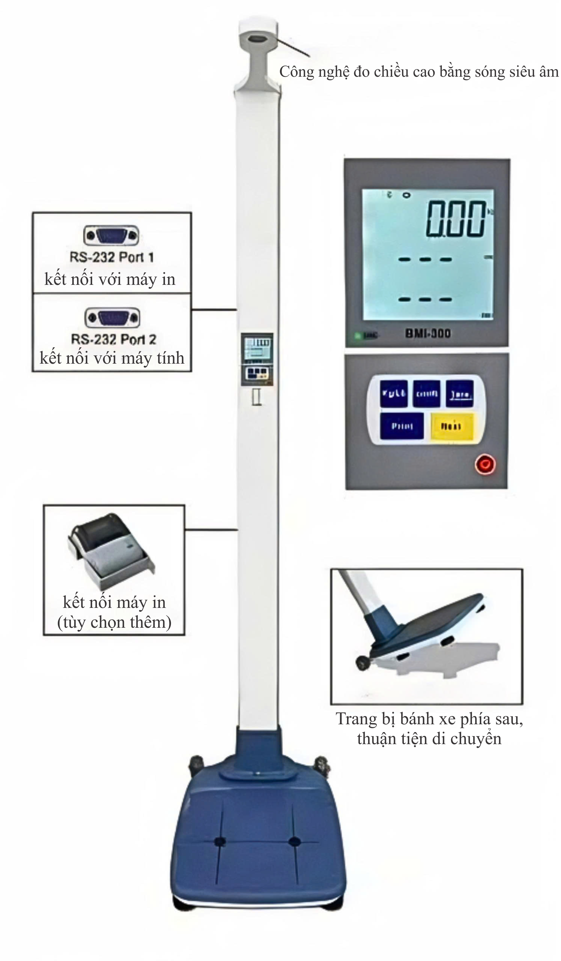 - Đo chiều cao tự động bằng sóng siêu âm.
